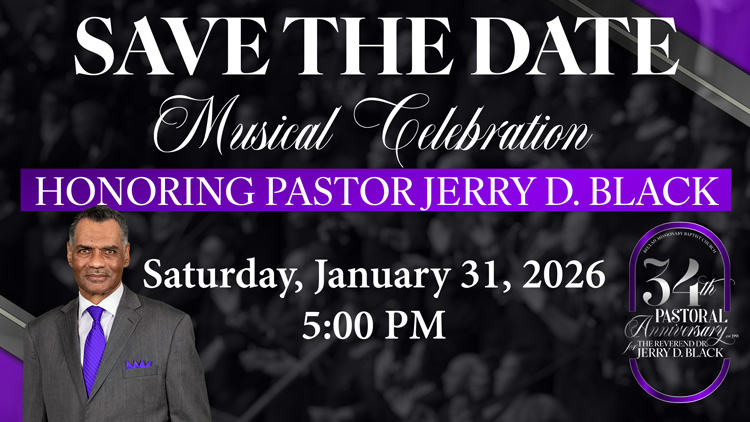 Join us at our celebratory events honoring our Pastor: Anniversary Worship Service Sunday, February 8, 2026 9:30 am Rev. Jasper Williams, Jr., Guest Speaker