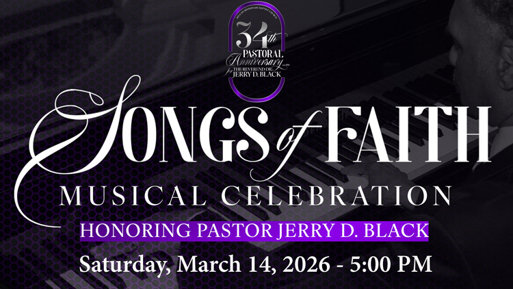 Join us for a post-anniversary celebration SONGS OF FAITH, in honor of our Pastor’s 34th Anniversary!